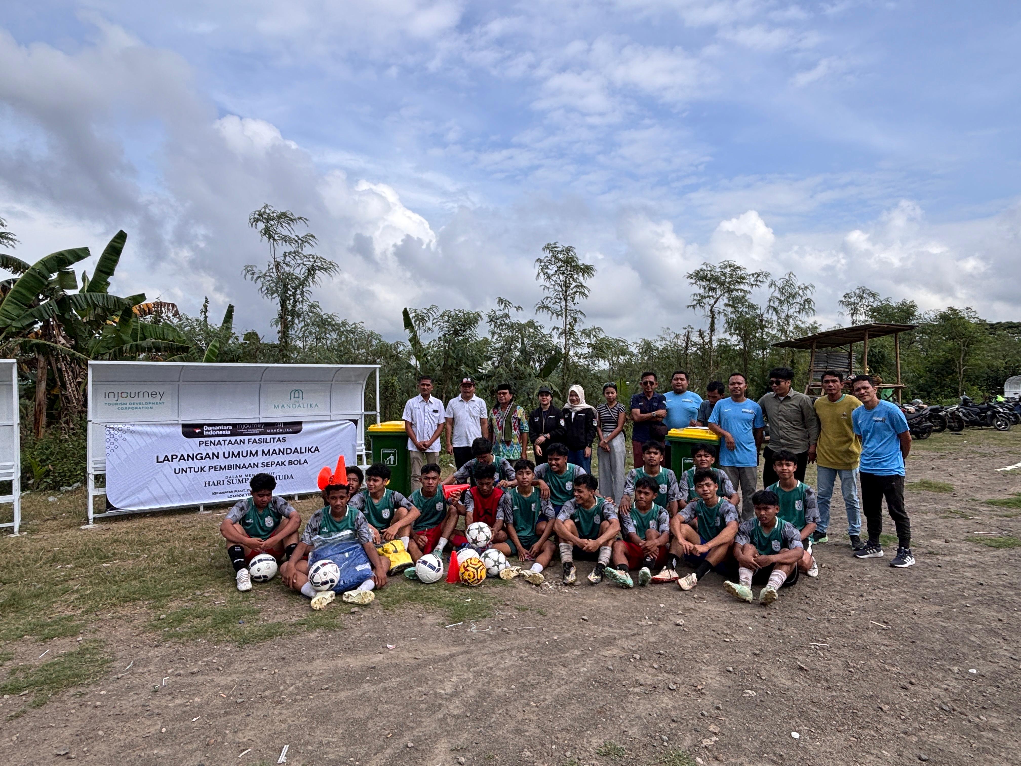 The Mandalika, 29 Oktober 2025 – InJourney Tourism Development Corporation (ITDC) terus memperkuat komitmennya dalam mendorong pembangunan berkelanjutan di Kawasan Ekonomi Khusus (KEK) Mandalika. Salah satu wujud nyata komitmen tersebut diwujudkan melalui kegiatan pemberian bantuan fasilitas, peralatan, dan pelatihan sepak bola di Kecamatan Pujut, Kabupaten Lombok Tengah, Nusa Tenggara Barat (NTB). ITDC berkolaborasi dengan Pemerintah Kecamatan, Desa, dan Karang Taruna setempat untuk memperkuat pembinaan olahraga masyarakat, khususnya di bidang sepak bola.Kegiatan yang digelar pada Rabu, (29/10) diawali dengan pelatihan dasar dribbling, passing, dan shooting. Praktek sepak bola yang dibimbing tiga pelatih Persatuan Sepak Bola Seluruh Indonesia (PSSI) Mataram, kemudian dilanjutkan dengan penyerahan simbolis bantuan peralatan olahraga dan sarana pendukung kebersihan lingkungan lapangan. Bantuan yang diserahkan ITDC meliputi pengecatan dan perbaikan gawang, papan skor, jaring gawang, bendera sudut (corner flag), pembuatan garis lapangan, bangku pemain, kanopi atap pemain, bola, cone latihan, serta tempat sampah.Dukungan ini merupakan bagian dari implementasi program Tanggung Jawab Sosial dan Lingkungan (TJSL) dan Community Development ITDC yang berfokus pada pengembangan komunitas di sekitar kawasan pariwisata KEK Mandalika. “Kami percaya bahwa olahraga memiliki peran besar dalam membangun karakter kedisiplinan, dan kebersamaan masyarakat. Kami ingin mendorong lahirnya semangat sportivitas dan kolaborasi dari tingkat desa, yang juga menjadi bagian dari pembangunan berkelanjutan di KEK Mandalika.” ujar PGS. General Manager The Mandalika, Agus Setiawan.Sementara itu, Camat Pujut, H. Jumahir, S.Sos juga menyampaikan apresiasinya terhadap dukungan ITDC yang dinilai memberikan dampak positif bagi pengembangan bakat muda di wilayahnya. “Kegiatan seperti ini sangat berarti bagi masyarakat kami, karena tidak hanya memperkuat sarana olahraga, tetapi juga membangun semangat anak muda untuk aktif dan berprestasi,” tutur Camat Pujut.Ke depan, kegiatan pembinaan olahraga ini diharapkan dapat berkelanjutan, melalui kerja sama lintas pihak antara pemerintah kecamatan, komunitas olahraga lokal, dan ITDC. Melalui kerja sama lintas pihak yang konsisten antara pemerintah kecamatan, komunitas olahraga lokal, dan ITDC, kegiatan ini dapat berkembang menjadi wadah pembinaan bagi atlet muda di tingkat desa. Sekaligus memperkuat ekosistem olahraga yang tumbuh dan hidup di tengah masyarakat.“Melalui kolaborasi ini, KEK Mandalika tidak hanya dikenal sebagai destinasi sportstainment, tetapi juga sebagai pusat pengembangan olahraga masyarakat yang tumbuh dari partisipasi komunitas lokal. Inisiatif semacam ini menjadi wujud nyata komitmen ITDC dalam mendorong pembangunan pariwisata kelas dunia yang berkelanjutan dan berorientasi pada pemberdayaan masyarakat di sekitar kawasan,” tutup Agus.