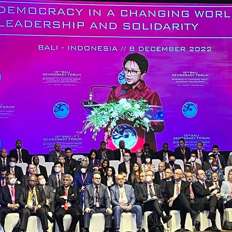 “Kami ucapkan selamat datang dan selamat berkonferensi bagi seluruh peserta forum 15th BDF di kawasan kami yang sudah sangat siap dengan segala fasilitas serta pengamanan terintegrasi untuk menjamin keselamatan dan kenyamanan para peserta selama mengikuti forum ini. Kami berharap forum ini menjadi kegiatan penutup tahun yang akan membawa pengaruh positif bagi negara-negara di dunia dalam menjalankan demokrasi di tengah tantangan yang ada.”