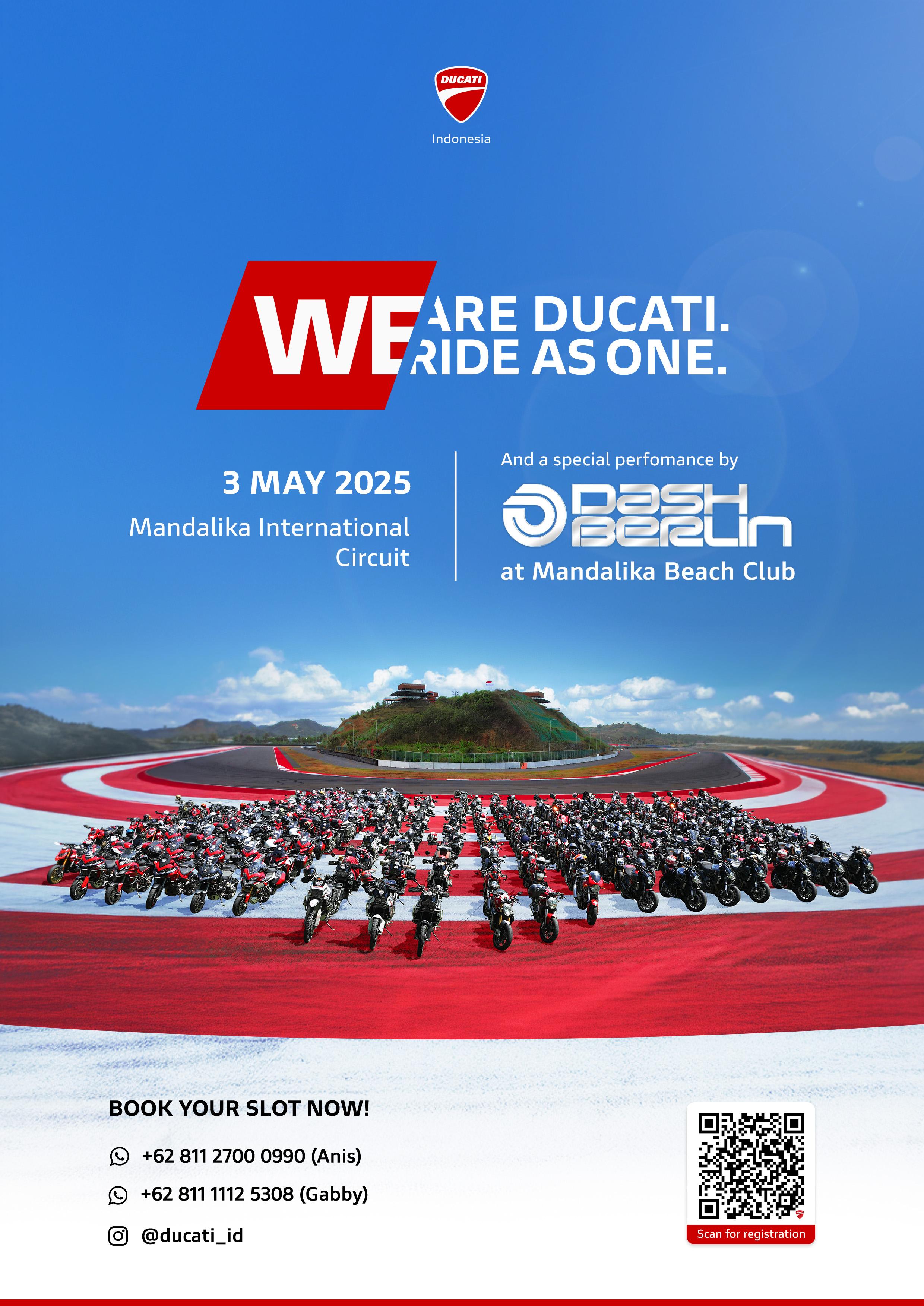 Sementara itu, CEO  Ducati Indonesia, Jimmy Budhijanto, menyampaikan, “Melalui Ducati Party, Ducati Indonesia ingin menghadirkan pengalaman yang menggabungkan semangat otomotif premium dan hiburan kelas dunia. Dengan mengundang DJ ternama Dash Berlin, kami berharap dapat mewujudkan salah satu strategi kreatif kami untuk menyatukan dunia otomotif dan musik. Ditambah lagi dengan peluncuran perdana single terbaru mereka 'Moonburn' di Asia Tenggara pada acara Ducati Party ini menjadi penanda komitmen kami dalam membawa momentum global ke tingkat lokal. Kami percaya, acara ini memperkuat posisi Ducati sebagai simbol gaya hidup berkelas bagi komunitas kami di Indonesia.”