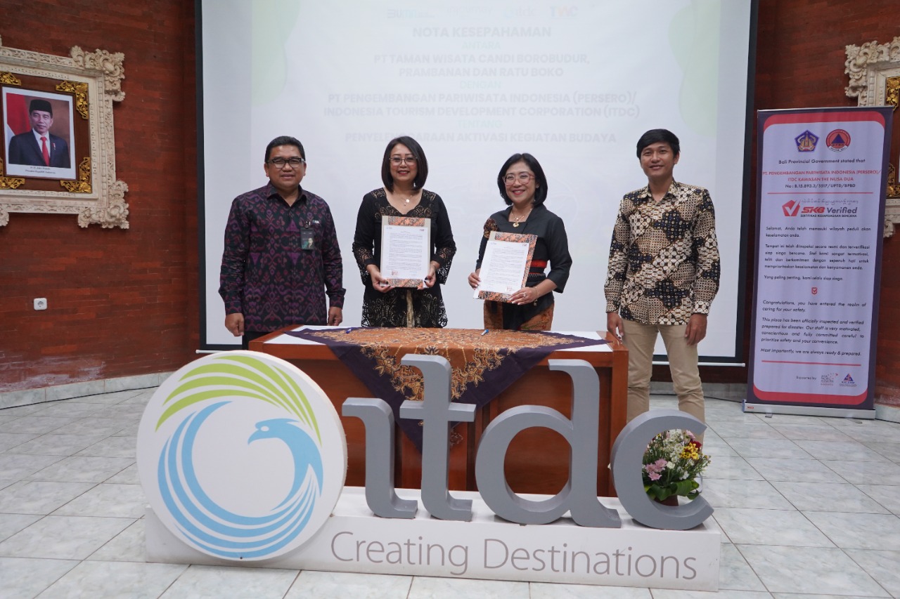 Dukungan ini dituangkan dalam penandatangan Nota Kesepahaman yang dilakukan oleh ITDC dengan PT Angkasa Pura Hotel (APH) dan dengan PT Taman Wisata Candi Borobudur, Prambanan dan Ratu Boko (TWC) terkait Pengelolaan Ruang dan Aktivasi Kegiatan Budaya di Kawasan Pariwisata The Nusa Dua. Melalui kerjasama ini APH akan memanfaatkan Blok RA di kawasan pariwisata The Nusa Dua sebagai pusat layanan Premium City Check-In dan Baggage Handling, sementara kerjasama ITDC dengan TWC akan mencakup perencanaan dan penyelenggaran event atraksi seni dan budaya serta spiritual wellness di kawasan.