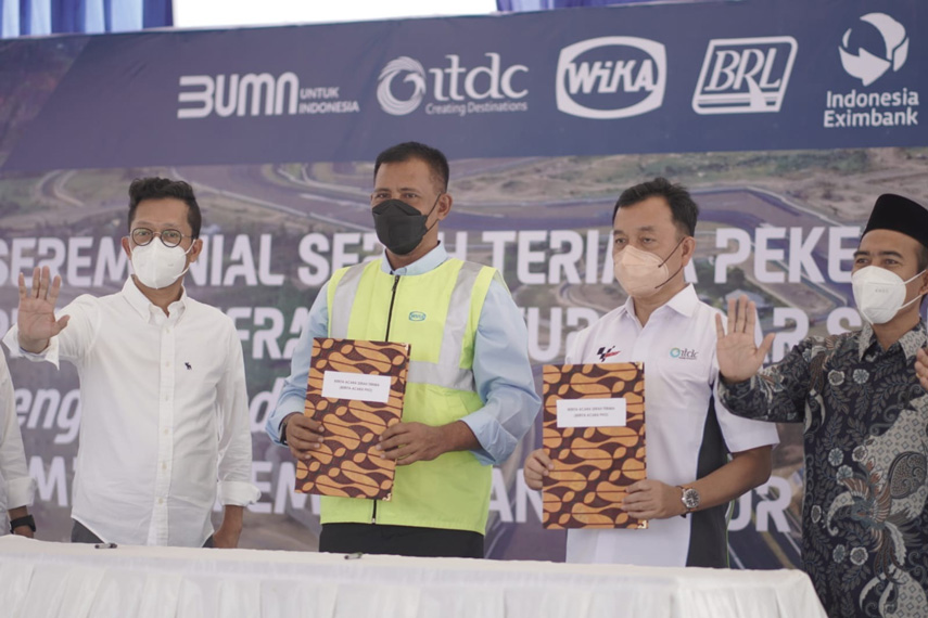 The Mandalika, 5 Oktober 2021 - Pada hari ini, PT Pengembangan Pariwisata Indonesia (Persero) atau Indonesia Tourism Development Corporation (ITDC), BUMN pengembang dan pengelola kawasan pariwisata The Nusa Dua, Bali dan Kawasan Ekonomi Khusus (KEK) Pariwisata Mandalika/The Mandalika, Lombok, NTB, melakukan serah terima pekerjaan/Provisional Hand Over (PHO) dari kontraktor PT Wijaya Karya (Persero) Tbk – PT Bunga Raya Lestari KSO (WIKA-BRL KSO) atas proyek infrastruktur dasar di The Mandalika. Proyek infrastruktur dasar yang terdiri dari infrastruktur dasar sirkuit dan non sirkuit ini didanai pembangunannya oleh Lembaga Pembiayaan Ekspor Indonesia (LPEI).