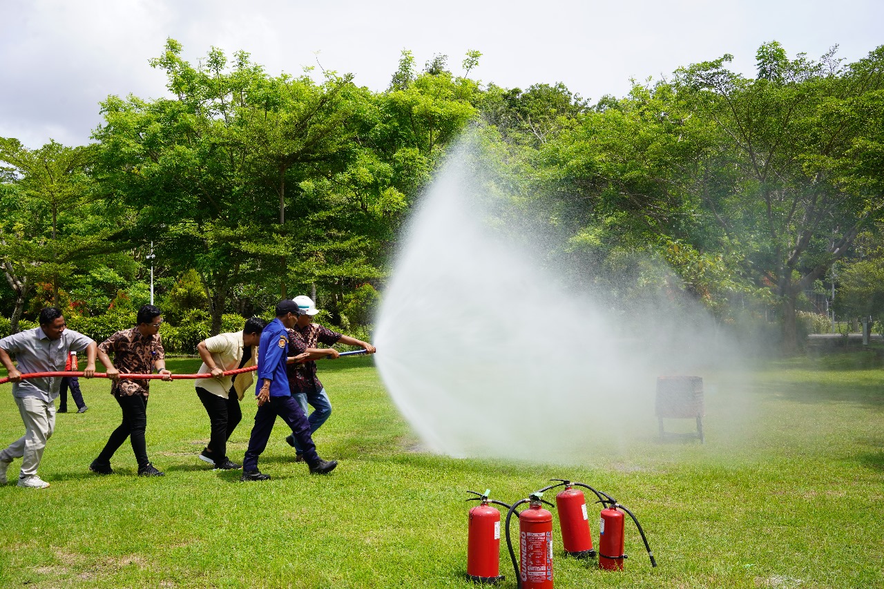 Melalui kegiatan ini, peserta mendapatkan pemahaman langsung mengenai tahapan penanggulangan kebakaran, mulai dari pengenalan kelas-kelas kebakaran dan jenis Alat Pemadam Api Ringan (APAR) yang sesuai untuk masing-masing kondisi, penanganan kebakaran pada kompor dan kebocoran Gas LPG, hingga praktik memadamkan api menggunakan APAR. Simulasi juga mencakup demonstrasi penanganan kebakaran dengan mobil Damkar sebagai tahapan akhir untuk memastikan peserta memahami koordinasi lapangan dalam situasi darurat.