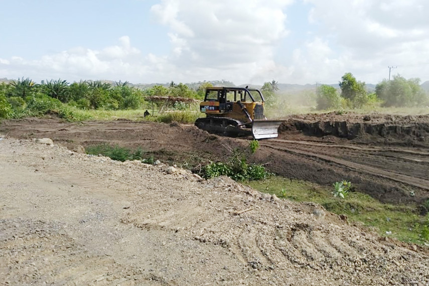 Item Pekerjaan Paket I yang mulai dikerjakan yaitu pembangunan jalan sepanjang 4,35 km serta lot parkir kendaraan seluas 104,72 are