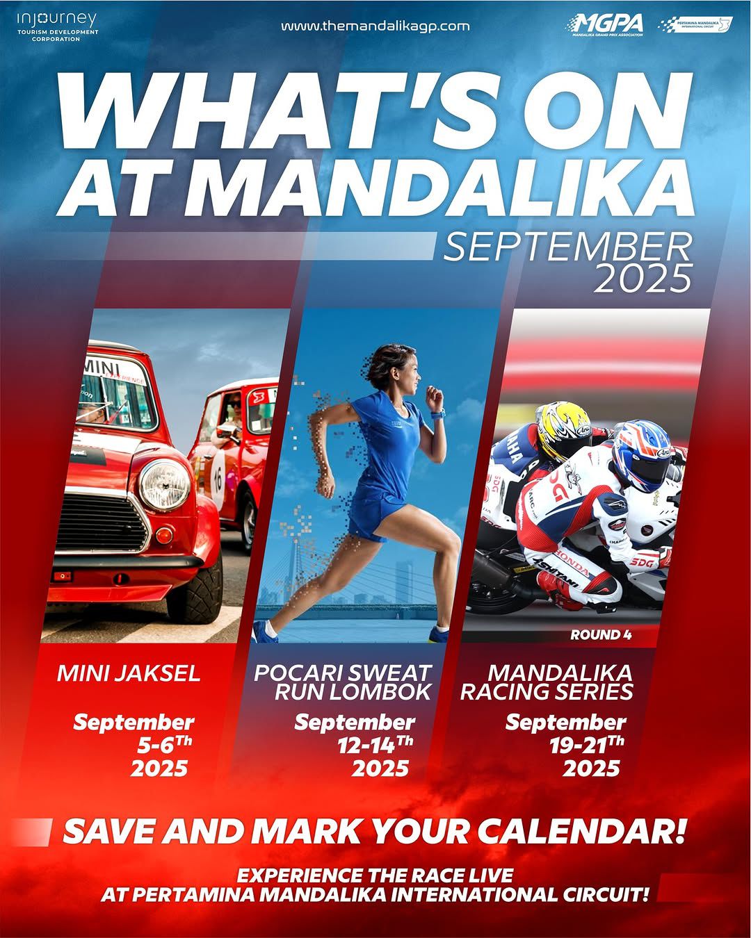 “Agenda September 2025 memperlihatkan bahwa The Mandalika semakin berkembang sebagai pusat kegiatan. Kehadiran berbagai event, mulai dari otomotif, olahraga, hingga hiburan, tidak hanya memperkuat citra pariwisata NTB, tetapi juga berdampak pada pertumbuhan sektor usaha lokal serta penciptaan lapangan kerja bagi masyarakat,” ujar Priandhi Satria.