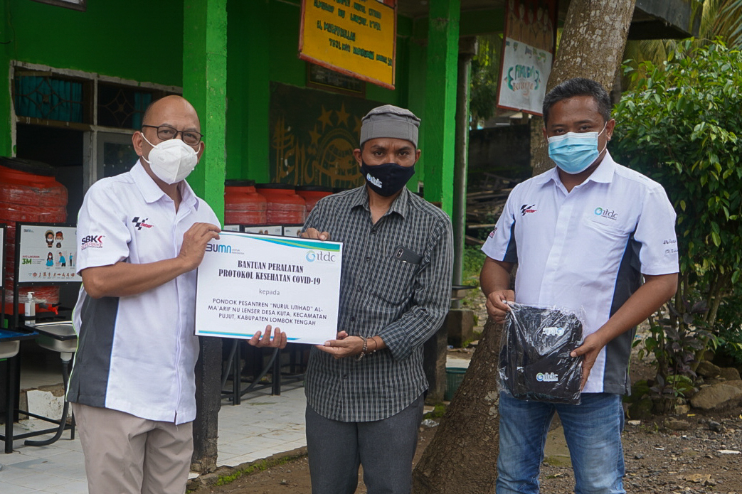 Kedua bantuan tersebut diserahkan oleh Managing Director The Mandalika Bram Subiandoro pada hari ini di masing-masing desa. Bantuan alat protokol kesehatan COVID-19 berupa 500 pcs masker kain, 10 unit tempat cuci tangan portable, 16 unit hand sanitizer beserta bracket, 25 liter refill hand sanitizer, dan 35 liter sabun cuci tangan diterima oleh Sekretaris Yayasan Pondok Pesantren Nurul Ijtihad Al-Ma Arif NU Lenser Edi Hartono. Bantuan ini akan digunakan oleh sejumlah 447 orang anak dan 52 orang guru yang melakukan kegiatan belajar mengajar di pondok pesantren tersebut.