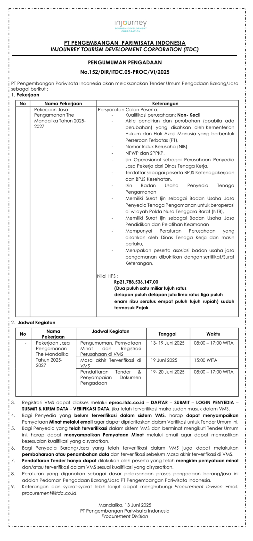 No.152/DIR/ITDC.05-PROC/VI/2025
