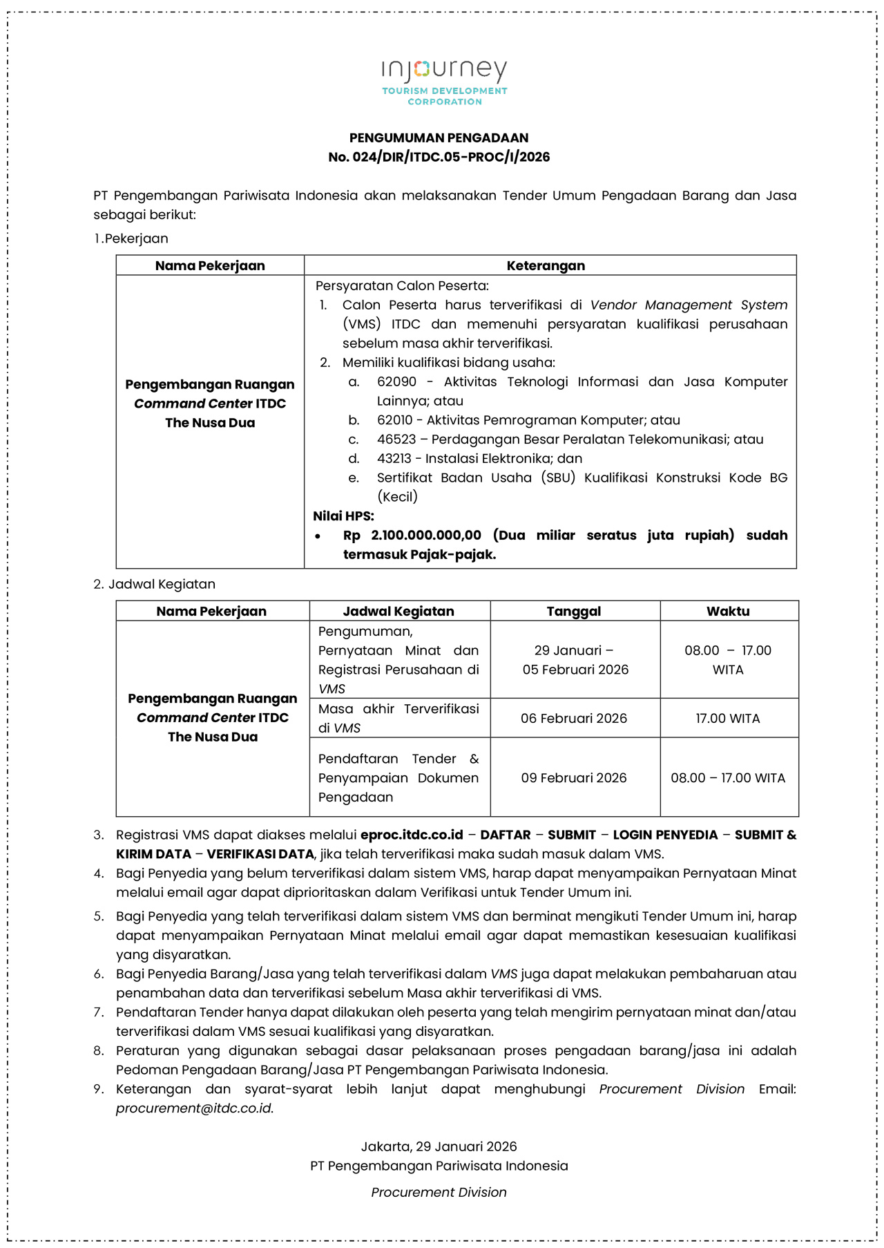No. 024/DIR/ITDC.05-PROC/I/2026