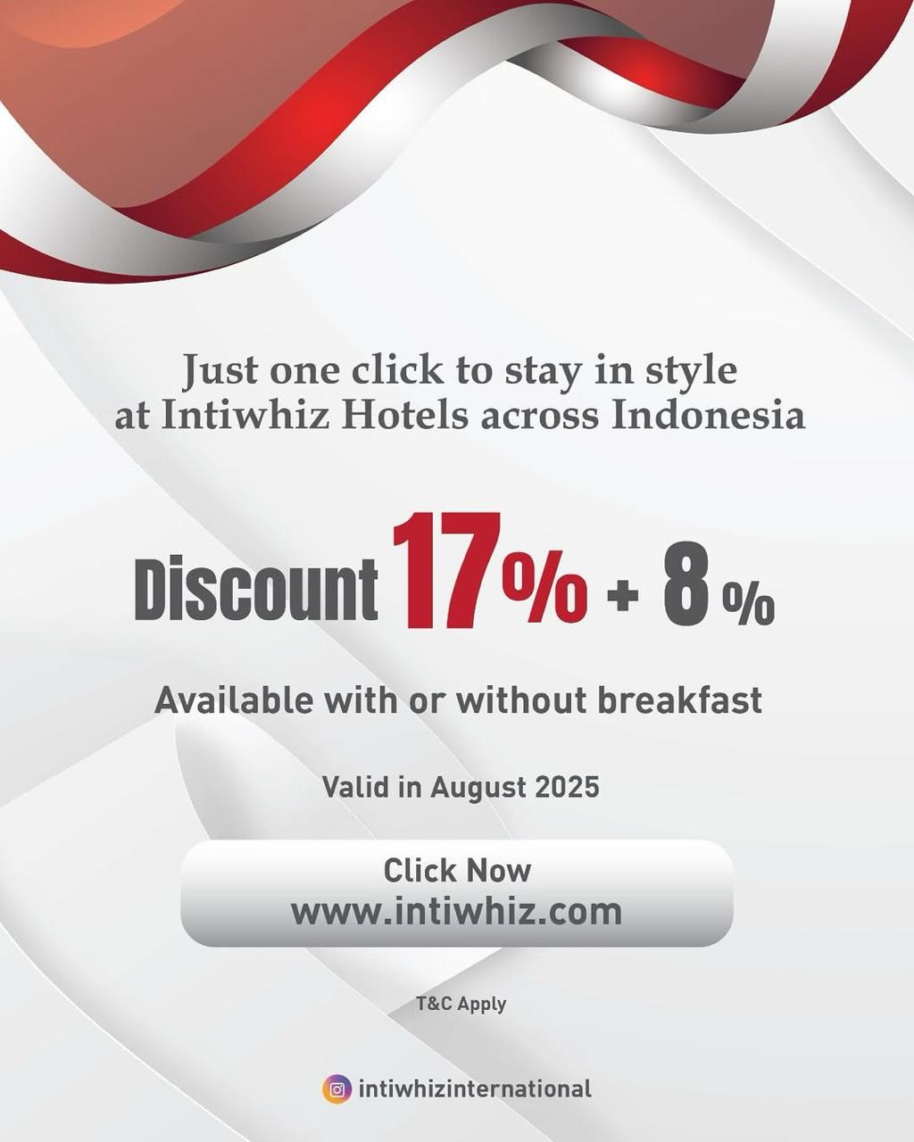 Just one click to stay in style at Intiwhiz Hotels across IndonesiaDiscount 17% + 8%Available with or without breakfast Valid in August 2025 Click Now:www.intiwhiz.comT&C Applyintiwhizinternational