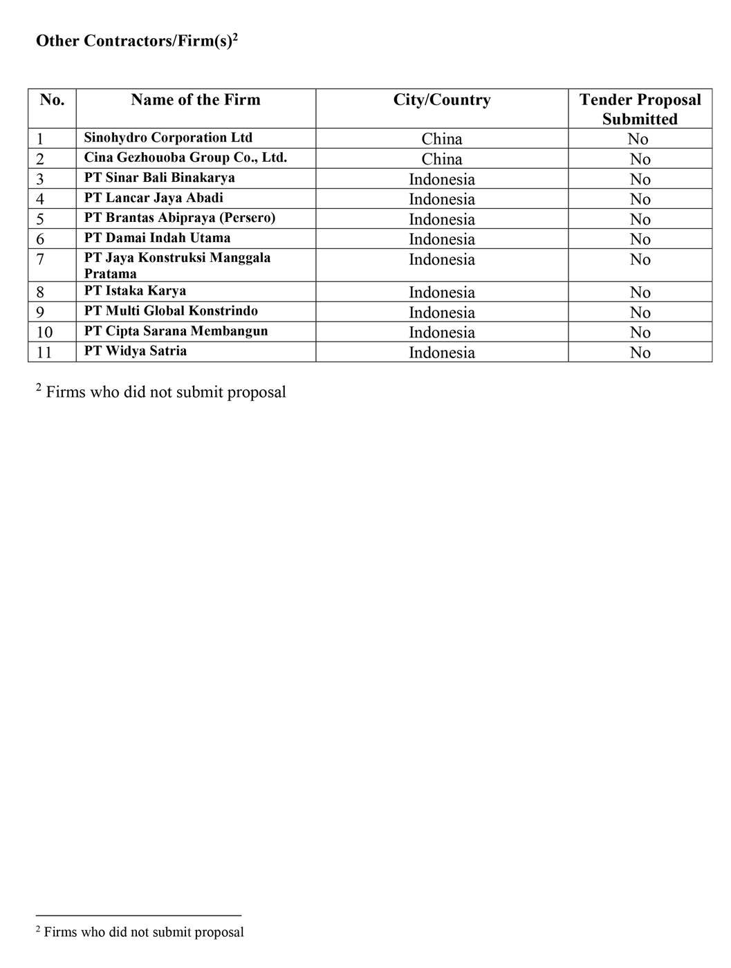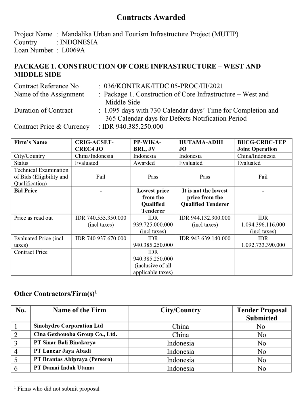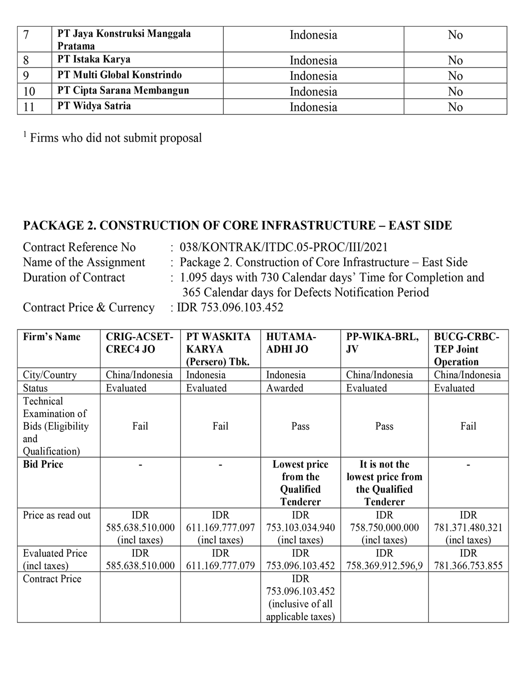 [Amended] Spesific Procurement Notice Package P1 & P2 - Construction of Core Infrastructure: Download Here