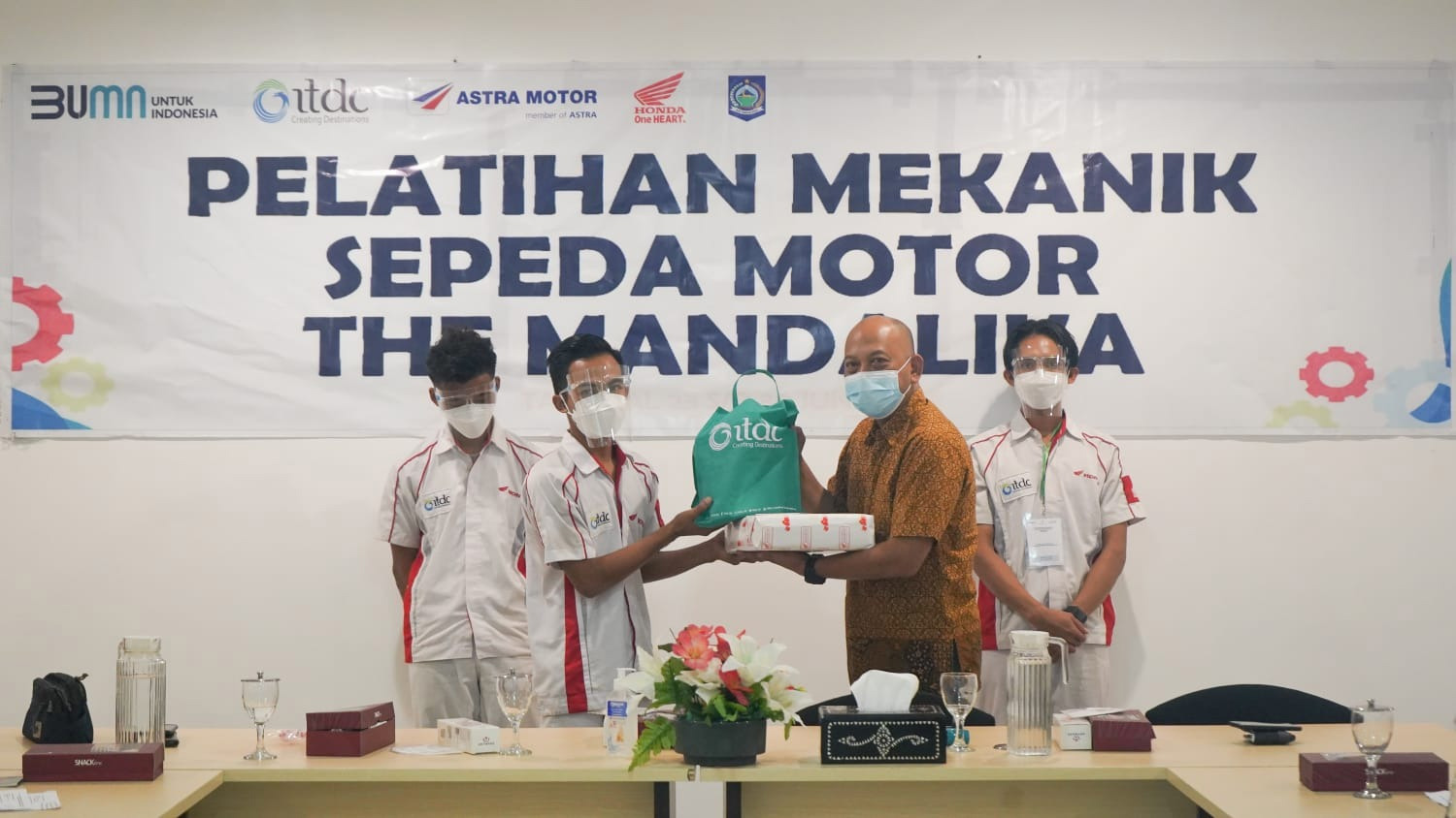 The Mandalika, 3 Oktober 2021 - 12 pemuda terpilih dari desa penyangga The Mandalika, kawasan pariwisata di Lombok NTB yang dikembangkan oleh PT Pengembangan Pariwisata Indonesia (Persero) atau Indonesia Tourism Development Corporation (ITDC), BUMN pengembang dan pengelola kawasan pariwisata di Indonesia, baru-baru ini menyelesaikan pelatihan mekanik sepeda motor yang diselenggarakan oleh ITDC bekerjasama dengan Astra Honda Authorized Service Station (AHASS) dan Dinas Koperasi dan UMKM Provinsi NTB.