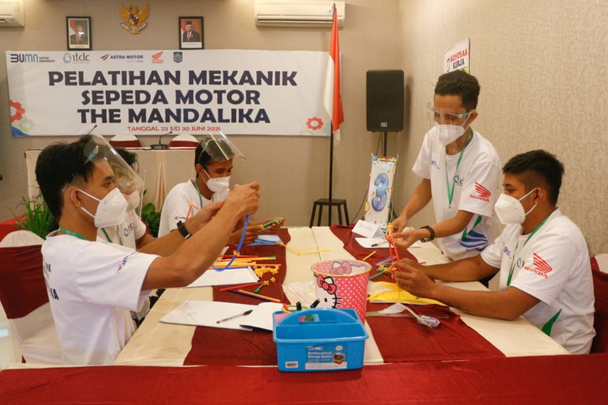 The Mandalika, 24 Juni 2021 - PT Pengembangan Pariwisata Indonesia (Persero) atau Indonesia Tourism Development Corporation (ITDC), BUMN pengembang dan pengelola kawasan pariwisata di Indonesia, pada hari Rabu, 23 Juni 2021 memulai pelatihan mekanik sepeda motor bagi 18 pemuda sasak terpilih dari enam desa penyangga The Mandalika, Destinasi Pariwisata Super Prioritas (DPSP) di Lombok NTB yang dikembangkan oleh ITDC. Pelatihan diselenggarakan oleh ITDC bekerjasama dengan Astra Honda Authorized Service Station (AHASS) dan Dinas Koperasi UKM Provinsi NTB, bertujuan menyiapkan tenaga mekanik sepeda motor yang terampil dan profesional serta siap pakai, bahkan dapat membuka usaha perbengkelan motor. Pelatihan akan berlangsung 23-30 Juni 2021 bertempat di Hotel Puri Indah, Mataram.