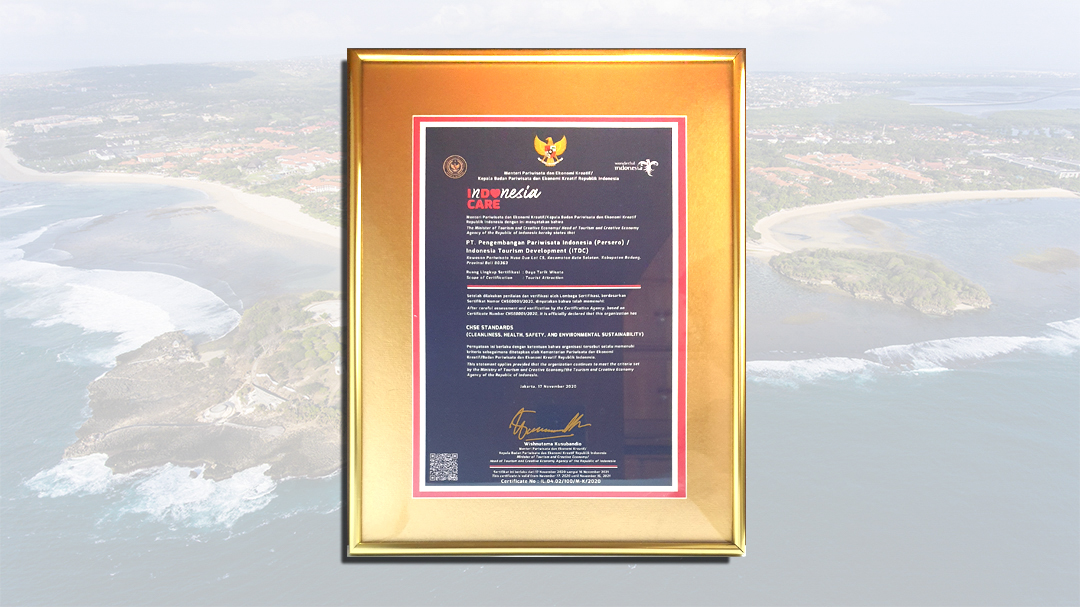Konsistensi tersebut berbuah hasil dengan diperolehnya Sertifikat CHSE Kemenparekraf untuk ruang lingkup Daya Tarik Wisata bagi kawasan The Nusa Dua, Bali. Dengan diperolehnya Sertifikat CHSE dari Kemenparekraf berarti bahwa The Nusa Dua telah lolos penilaian dan verifikasi oleh Lembaga Sertifikasi serta dinyatakan telah menjalankan standar-standar penerapan CHSE yang telah ditetapkan.