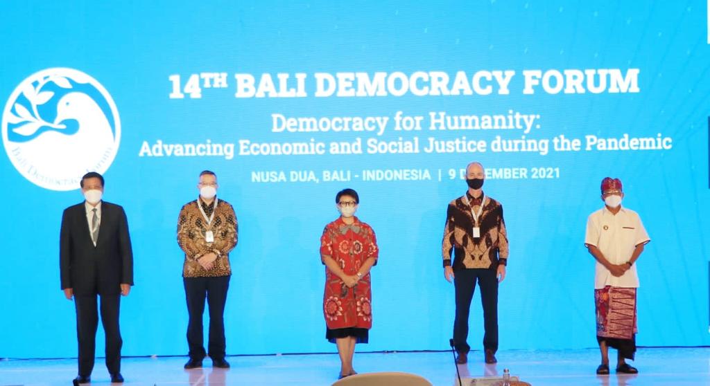 BDF adalah forum kerjasama tahunan negara-negara demokrasi di Asia yang bertujuan untuk memperkuat kapasitas dan institusi demokrasi melalui diskusi antar negara dimana tiap negara diwakili oleh masing-masing Menteri Luar Negeri. Sedangkan FCBD merupakan rangkaian acara G20 yang akan diselenggarakan sebanyak 3 kali, yaitu pada Desember 2021, Februari dan Juli 2022, untuk membahas rumusan hal yang akan diangkat dalam acara puncak KTT G20 pada Oktober 2022.