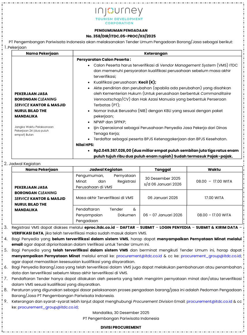 No. 358/DIR/ITDC.05-PROC/XII/2025