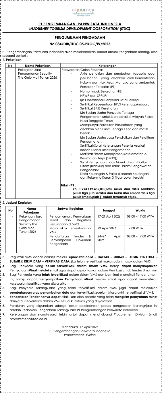No.084/DIR/ITDC.05-PROC/IV/2026