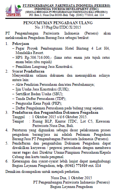 PEKERJAAN PAGAR PROYEK PEMBANGUNAN HOTEL BINTANG 4 LOT H4, MANDALIKA RESORT