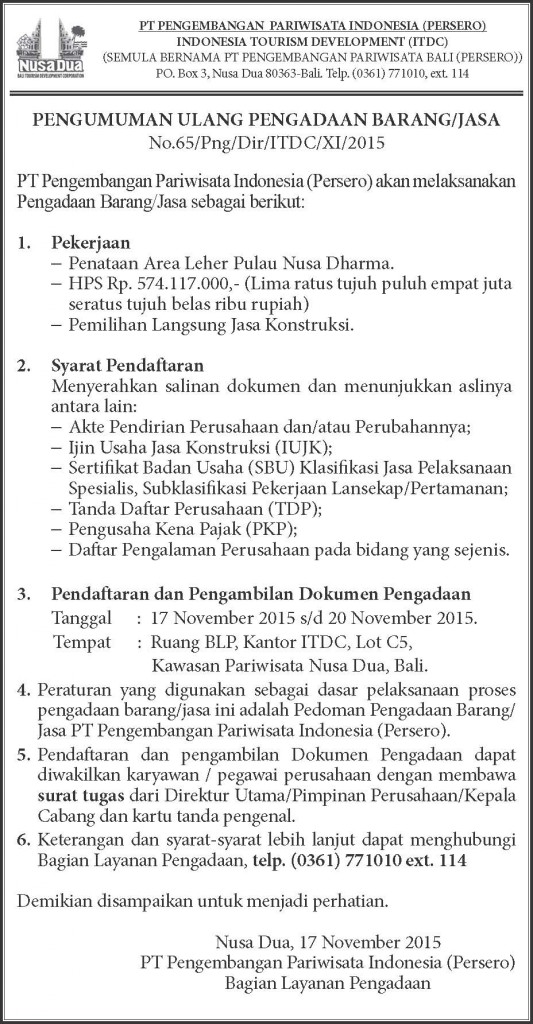 PENATAAN AREA LEHER PULAU NUSA DHARMA (PENGUMUMAN ULANG)
