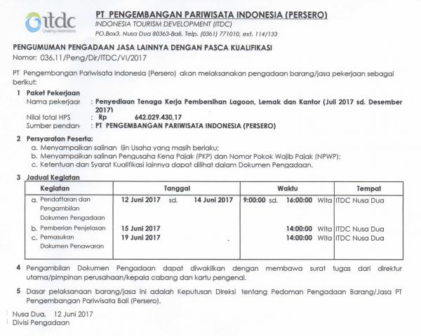ANNOUNCEMENT OF OTHER PROCUREMENT SERVICES WITH POST QUALIFICATION NO 036.11 / Peng / Dir / ITDC / VI / 2017