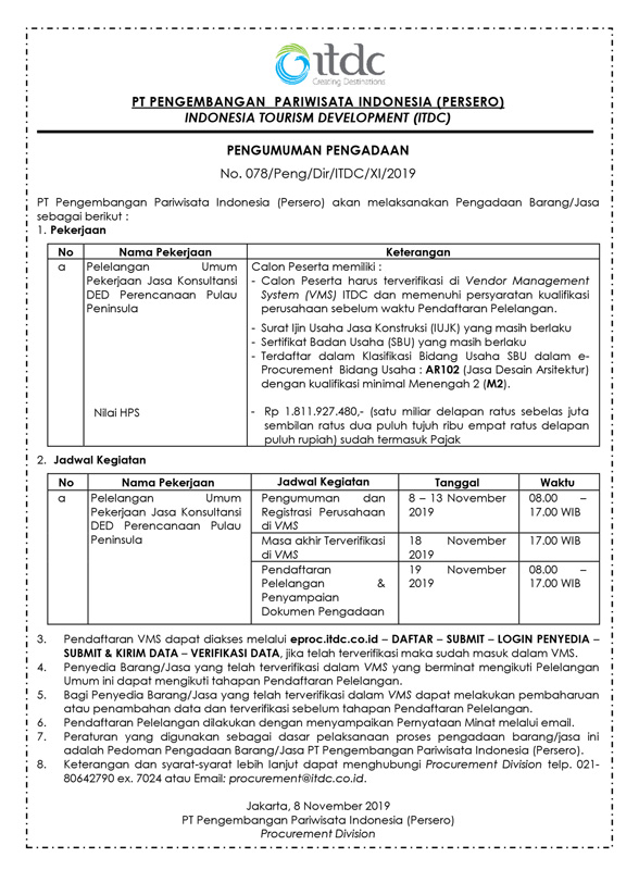 Procurement Announcement No. 078 / Peng / Dir / ITDC / XI / 2019