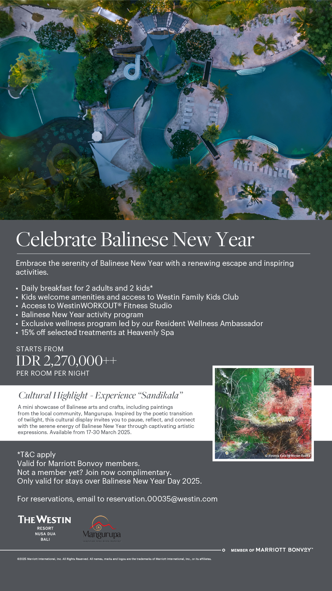 Embrace the serenity of Balinese New Year with a renewing escape and inspiring activities with The Westin Nusa Dua, Bali Starts from IDR 2.270.000 ++ per room per night and cultural night - experience "sandikala"