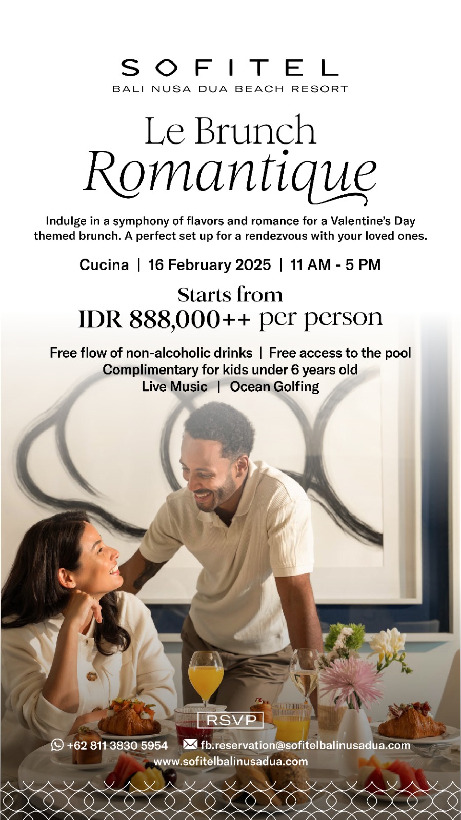 Indulge in a symphony of flavors and romance for a Valentine's Day themed brunch. A perfect set up for a rendezvous with your loved onesCucina | 16 Feb 2025 | 11 AM - 5 PMStarts from IDR 888.000 ++/person