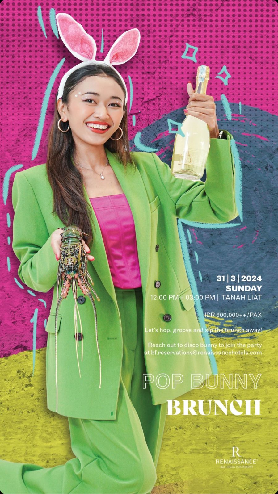 Let's hop, groove and sip the brunch away! Reach out to disco bunny to join the party!31-3-2024 SUNDAY12:00 PM 03:00 PM | TANAH LIATIDR 600,000++/PAX