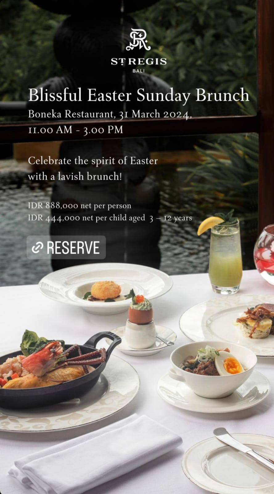 Boneka Restaurant, 31 March 2024,11.00 AM - 3.00 PMCelebrate the spirit of Easter with a lavish brunch!IDR 888,000 net per personIDR 444,000 net per child aged 3-12 years