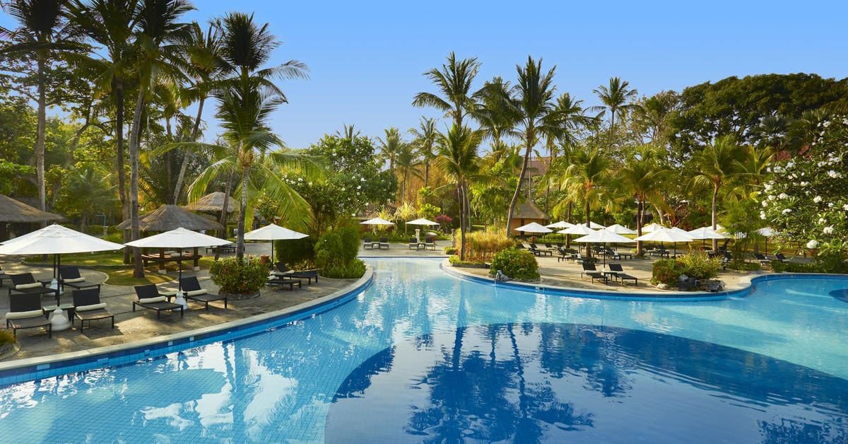 Experience ultimate luxury amidst our finest beachfront resort during your Bali Warm Up Vacation with us.Indulge with confidence, leisure and ease.Sofitel Bali Nusa Dua Beach Resort is a french-inspired luxury 5-star beachfront resort with tropical gardens and sophisticated, modern architecture. Part of the MyResorts program featuring exclusive experiences for ALL members, it offers 415 rooms including 39 suites and villas with complete resort facilities: 3 restaurants, 2 bars, SoFIT, SoSPA, outdoor and indoor kids club and 12 function rooms including a Grand Ballroom and a Beachfront Ballroom.This luxury beach resort is located within the exclusive resort area in Nusa Dua, Bali with stunning sunrise, pristine beach, and a beachside pathways stretched over 7 km, perfect for morning walks or a cycling tour.