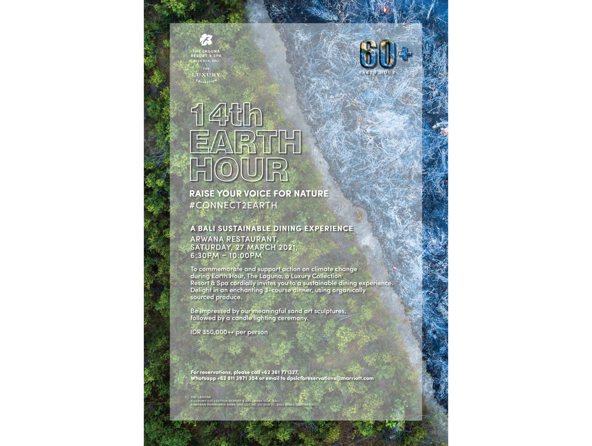 Saturday, 27 March 2021,6:30PM – 10:00PMTo commemorate and support action on climate change during Earth Hour, The Laguna, a Luxury Collection Resort & Spa cordially invites you to a sustainable dining experience. Delight in an enchanting 3-course dinner, using organically sourced produce.Be impressed by our meaningful sand art sculptures, followed by a candle lighting ceremony.IDR 350,000++ per personFor reservations, please call +62 361 771327,Whatsapp +62 811 3971 304 or email to dpslcfbreservations@marriott.com